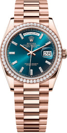 Rolex Day-Date 36 36mm Blue-Green Diamond-Set Dial Diamond Bezel President Bracelet - 128345RBR