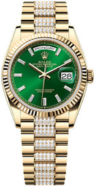 Rolex Day-Date 36 36mm Bright Green Diamond-Set Dial Fluted Bezel with Diamond-Set President Bracelet - 128238
