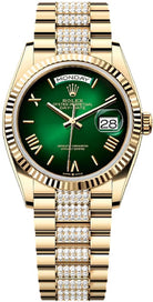 Rolex Day-Date 36 36mm Green Ombré Dial Fluted Bezel with Diamond-Set President Bracelet - 128238