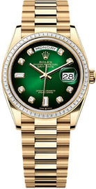 Rolex Day-Date 36 36mm Green Ombré Diamond Dial Diamond-Set Bezel President Bracelet - 128398TBR