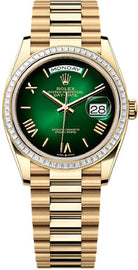 Rolex Day-Date 36 36mm Green Ombré Roman Dial Diamond-Set Bezel President Bracelet - 128398TBR