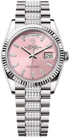 Rolex Day-Date 36 36mm Pink Diamond-Set Dial Fluted Bezel with Diamond-Set President Bracelet - 128239