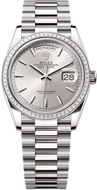Rolex Day-Date 36 36mm Silver Stick Dial Diamond-Set Bezel President Bracelet - 128399TBR