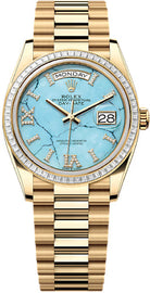 Rolex Day-Date 36 36mm Turquoise Diamond Dial Diamond-Set Bezel President Bracelet - 128398TBR