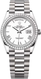 Rolex Day-Date 36 36mm White Dial Diamond-Set Bezel President Bracelet - 128349RBR