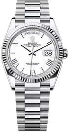 Rolex Day-Date 36 36mm White Dial Fluted Bezel President Bracelet - 128236
