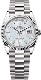 Rolex Day-Date 36 36mm White MOP Diamond-Set Dial Fluted Bezel President Bracelet - 128239