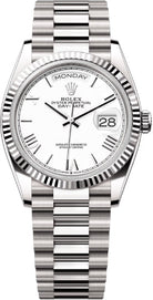 Rolex Day-Date 36 36mm White Roman Dial Fluted Bezel President Bracelet - 128239