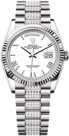 Rolex Day-Date 36 36mm White Roman Dial Fluted Bezel with Diamond-Set President Bracelet - 128239