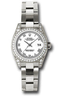 Rolex White Gold Lady-Datejust 26mm - 42 Diamond Bezel - White Roman Dial - Oyster Bracelet - 179159 wro