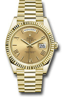 Rolex Yellow Gold Day-Date 40 mm Fluted Bezel Champagne Roman Dial 228238